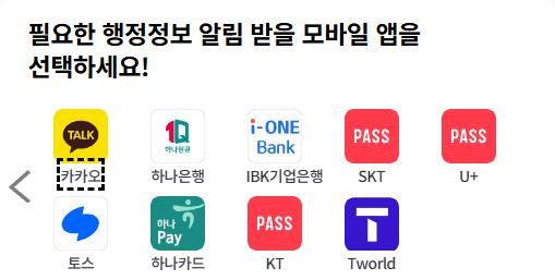 - 서비스 설정: 민생지원금 → 수신 채널(문자/카카오톡) 선택