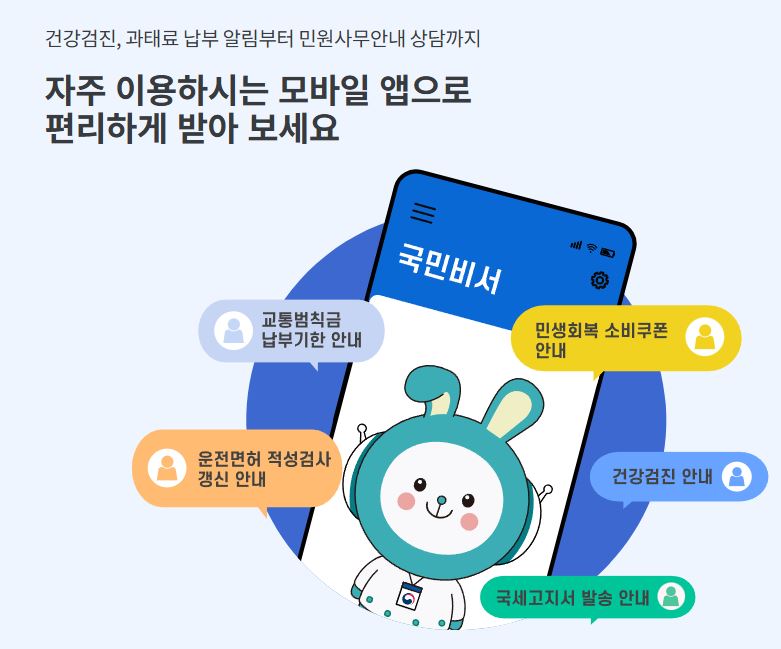 국민비서 알림서비스는 정부가 제공하는 맞춤형 알림 플랫폼으로 민생회복지원금과 관련한 주요 안내사항을 문자, 카카오톡 등으로 받을 수 있습니다.